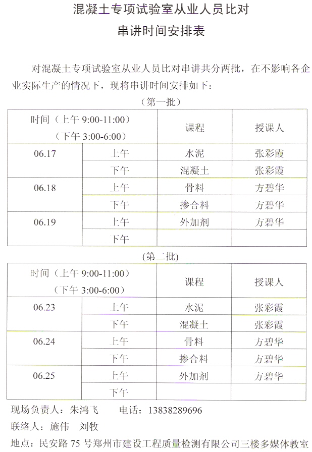 混凝土专项试验室从业人员比对串讲时间安排表的通知